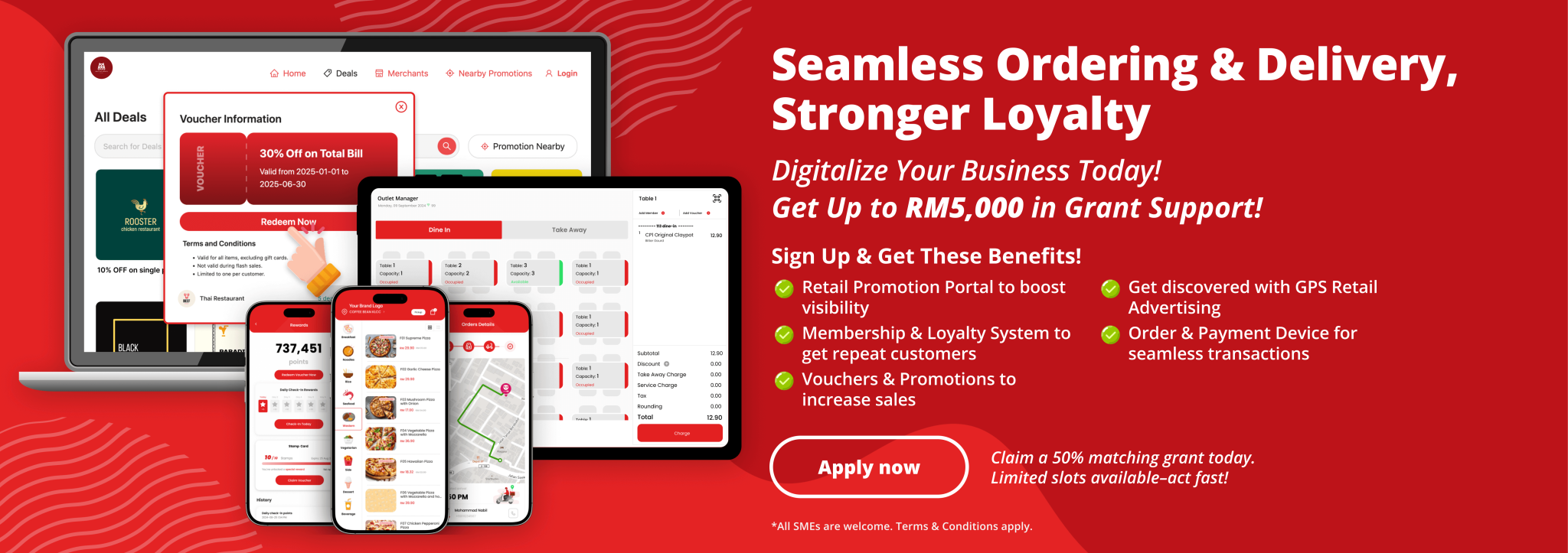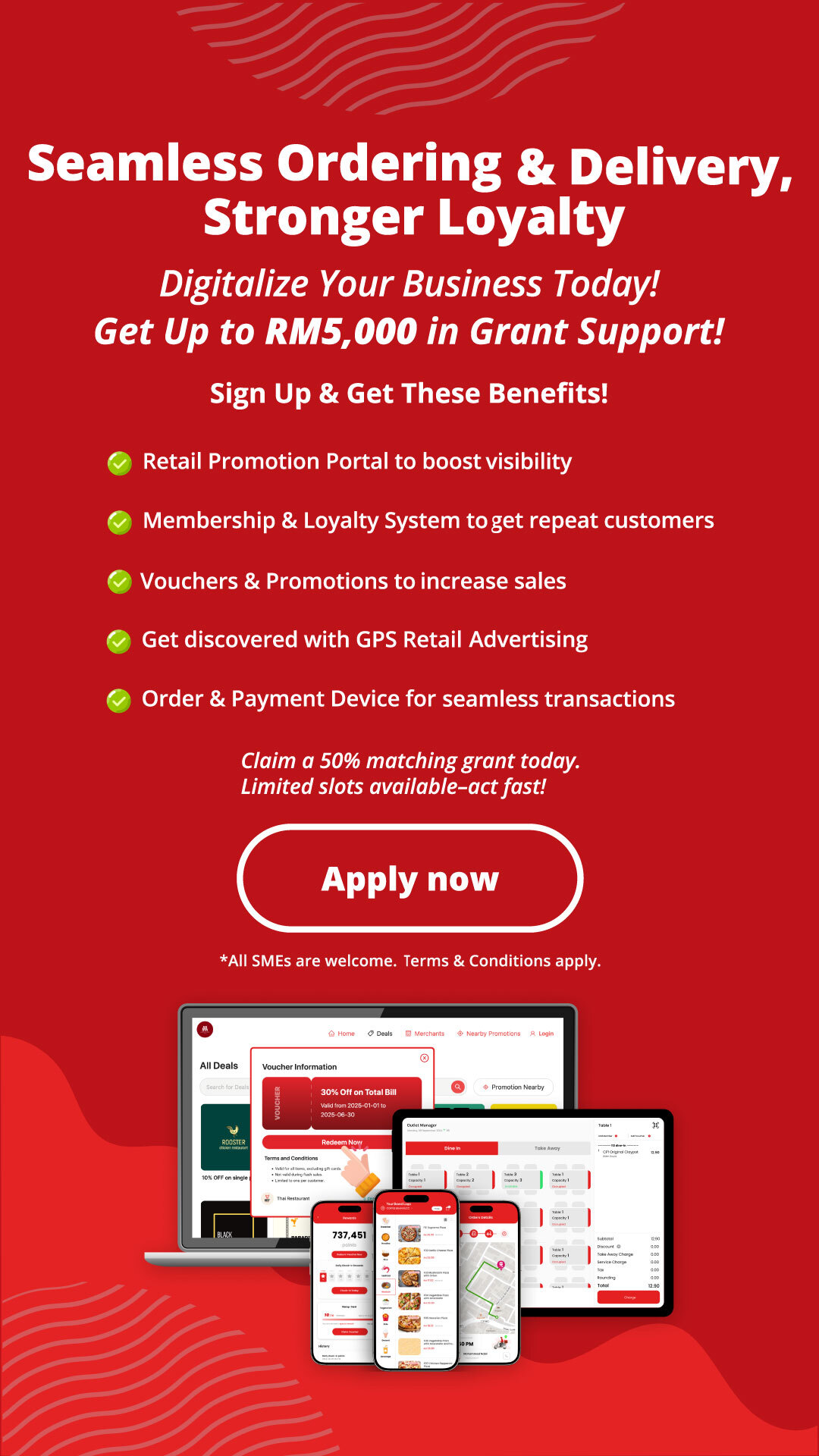 Eligible businesses can receive a 50% matching subsidy grant of up to RM5,000 from the government.